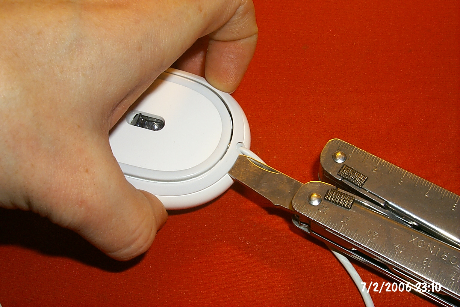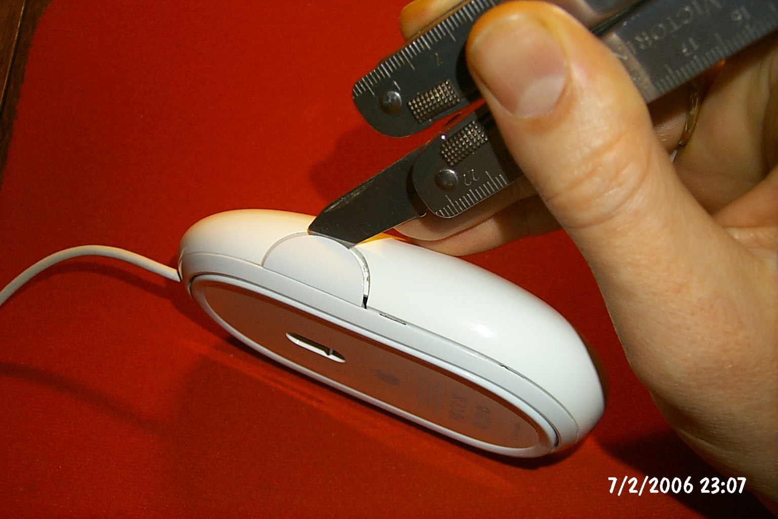 Es geht auch, ohne den Zierring wieder einzukleben. Klicktechnisch sogar besser, weil beim Klicken nicht das evtl. auf der Unterlage aufliegende Kabel verschoben werden muß. Für die Notebook-Tasche viellicht nicht ganz so gut, weil da tatsächlich leicht mal (leicht mit bösen Folgen für die Flexbänder) die beiden Hauptteile aus dem Scharnier gedrückt werden kónnten.
